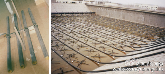 而高分子管式曝氣器已逐步取代剛玉、第二代橡膠膜盤式和管式曝氣器,采用的是復(fù)合高密度聚乙烯曝氣膜,HDPE高分子疏水性材料,膜不易結(jié)垢,不粘連雜物,具有較高的空隙率和均勻的孔徑,孔徑為50微米左右;且高分子膜片表面具有良好的疏水性能,因此從原理上決定了曝氣管的抗污染性,耐高溫(大于110度),耐酸堿,通用性好,不硬化,不結(jié)垢;保證使用壽命在10年以上。